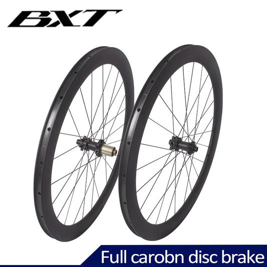 BXT 700C Carbon Road Bike Wheels Black Matte/Glossy Lightweight Full Carbon Fiber Road Bicycle Disc Brake Wheels
