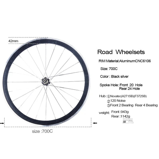 BXT 700C V-brake alloy wheels NO carbon road bicycle aluminium clincher road wheelset novatec hub chinese bicycle wheels
