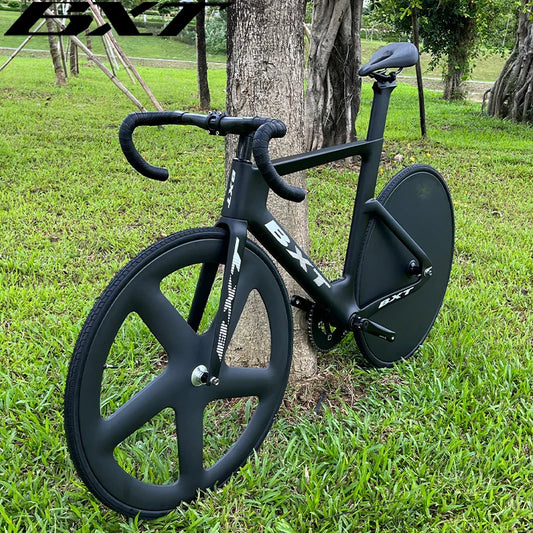 BXT Track Complete Bike Carbon Fiber Fixed Gear Bicycle 48T 51T 56T Single Chainring Carbon Track Bike Closed Wheel Time Trial Track Bike