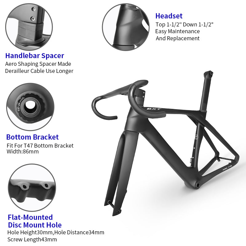BXT-Fully Hidden Carbon Disc Brake Road Bike Frame, Bicycle Bottom Bracket, BSA T47 Cyclocross Frameset, Max 700 x 32C